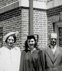 Working with influential researchers, including neurologist L. Lahut Uzman and Eugene P. Kennedy, a pioneer in lipid biochemistry and cell biology, she co-authored well-received articles on enzymology, brain development and cellular metabolism. Her colleague Phyllis Elfman remembers her as a very quiet and private person who still enjoyed the camaraderie that Kennedy fostered by hosting frequent staff get-togethers at his home. Rumley delighted in the opportunity to work and socialize with physicians and post-doctoral students from all over the world. Highly respected for her intelligence and research acumen, she was also a "real person," says Elfman. "You always knew exactly what to expect from her." Rumley retired in the late 1990s after working at Harvard for more than 50 years—the only place she ever worked. Rumley, pictured with her parents at left after graduation, encouraged her siblings and cousins to pursue an education, both in school and by exploring what lay beyond their own hometowns. By taking them to museums and restaurants in Boston and Cambridge, "she expanded our world," says Deforge. Although modest in the extreme, Rumley, who died on Aug. 24 at age 81, could talk about anything, says close friend Pat Kling Lambert '51. "She was always up-to-date on what was going on in the world—and had an opinion about it." An avid walker, Rumley owned a car only briefly and preferred getting around on foot, says Lambert. She made many trips to Europe, England and Scotland, and especially liked exploring the British Isles in search of fine yarns to knit sweaters and mittens. She had a passion for collecting silver items and antique china, acquiring an impressive collection of Limoges porcelain. Mindful of the financial struggles entailed in earning her own degree, Rumley left UNH a gift to endow a merit-based scholarship fund, named after her grandfather Charles F. Marble, for students enrolled in the College of Life Sciences and Agriculture. Return to In Memoriam blog comments powered by Disqus |