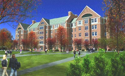 A new residence hall and dining facility are changing the campus in ways large and small. Both are under construction on sites adjacent to the Memorial Union Building. The 70,000-square-foot dining facility is on the site of the former Kappa Sigma fraternity and will be connected to the MUB through a short glassed walkway. The facility will seat more than 1,100 people in a main dining room, extended-hours café and function room. Huddleston Hall will no longer serve student meals; instead it will become a catering and conference facility. The new dining facility is scheduled to open in the fall of 2003. The five-story residence hall faces Huddleston, Hetzel and Fairchild halls. The building has three wings and features a new kind of living arrangement: suites for four to eight people. Each suite has single and double rooms and shared bathing facilities. Most also have a living room. The residence hall will house 359 students when it opens in late November 2002. ~ Easy to print version blog comments powered by Disqus |