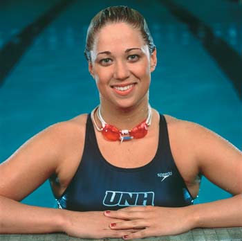 How's this for power: Undefeated for the season, the women's team placed 11th nationally and was the only team from New England to earn a top-20 ranking. In March, they captured the America East Conference Championship in a dramatic come-from-behind victory by winning their final relay. "It was sweet, putting that banner on our wall," captain Melissa Lague '05 says. "We'd been trying to do that for three years." Of all the team's success stories this year, Lague's is perhaps the most compelling. The Salem, N.H., native began swimming competitively at age 7, but by her senior year in high school she was burnt out. She didn't go near a pool for two years. As a freshman at the University of Connecticut, Lague observed the UNH team vicariously through her sister, Jessica Lague '00. Melissa really liked Willman's philosophy. "He encourages you to find your motivation from within," she explains. She transferred to UNH as a sophomore and started swimming again seriously.