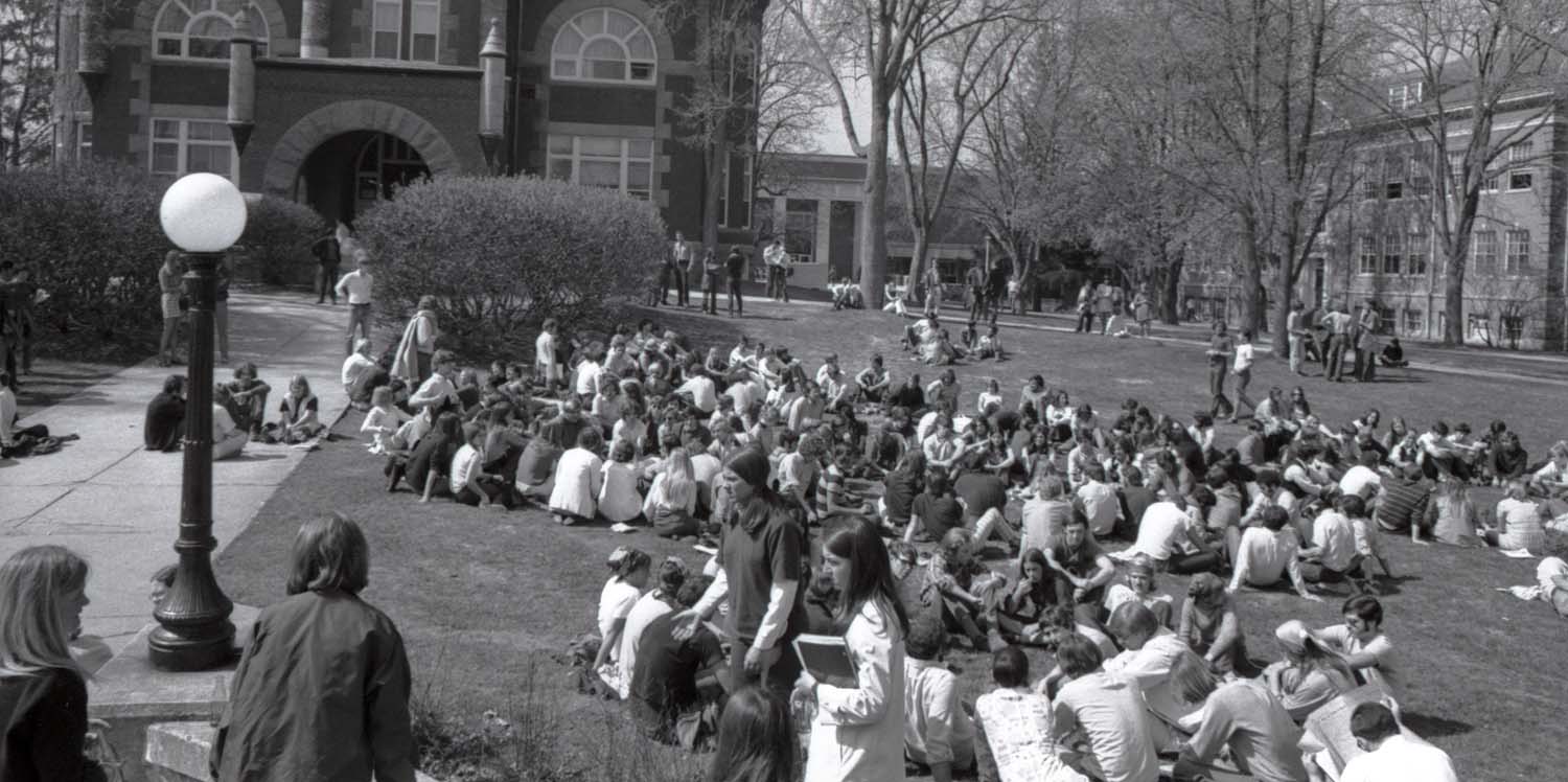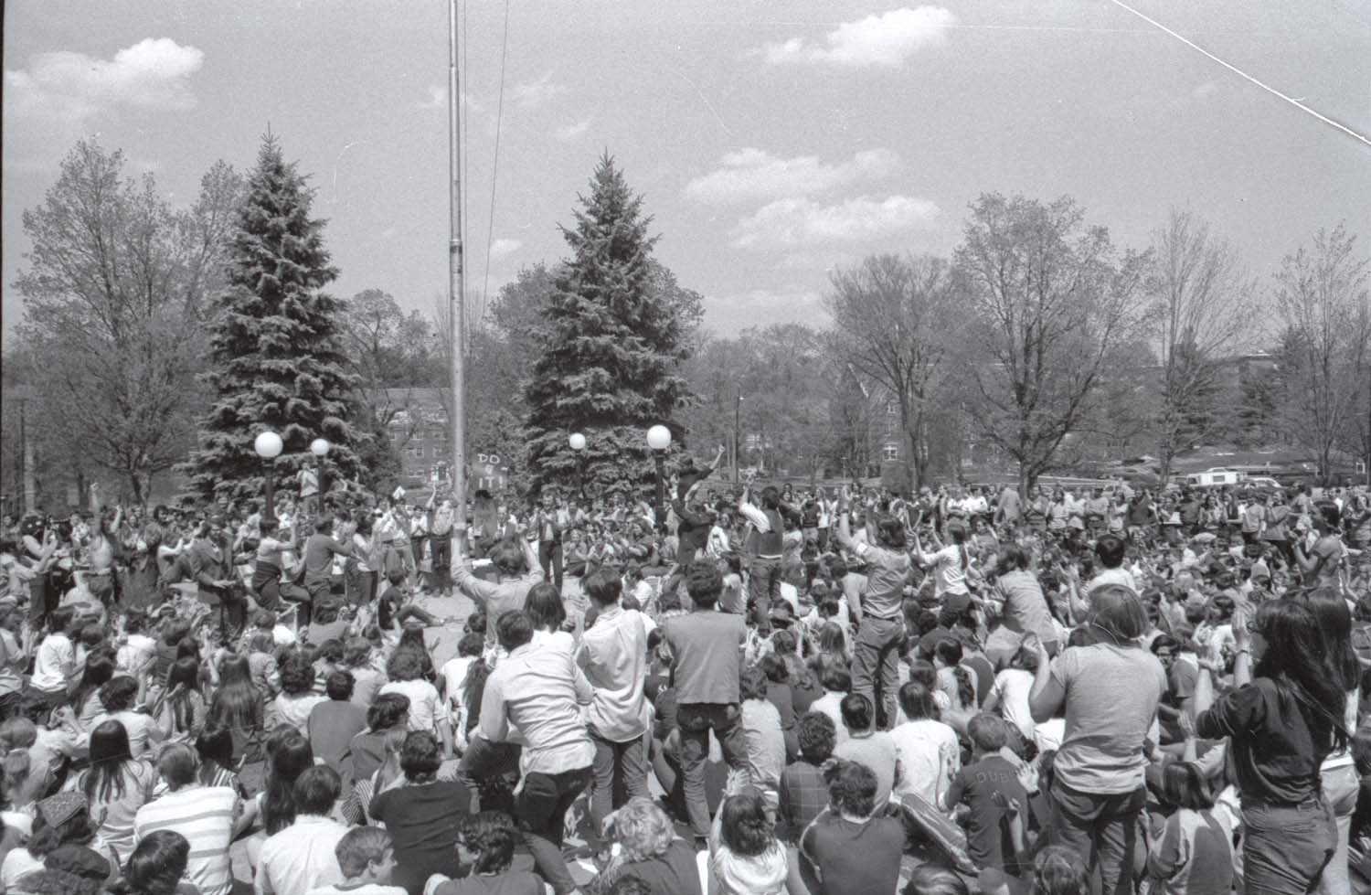 12. Jaan Laaman '70 (aka Jan Laan) on the bullhorn. Click photo for a larger version; e-mail alumni.editor@unh.edu if you recognize anyone else. |