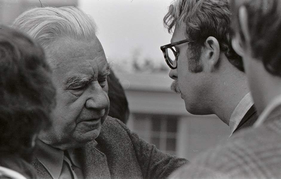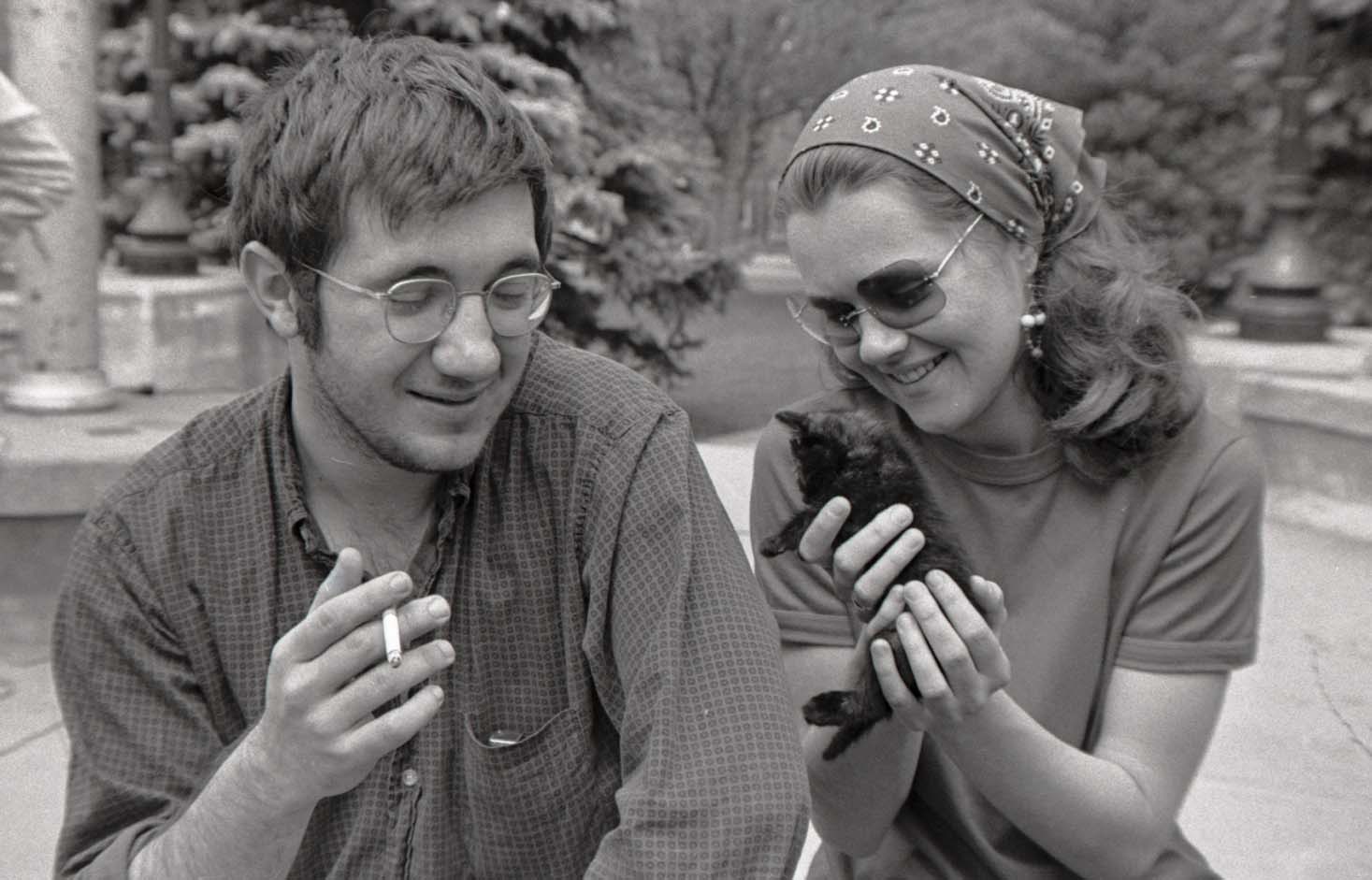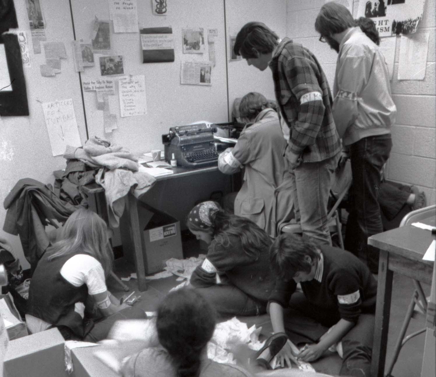 19. Students in Concord for a court hearing for Mark Wefer's trial on criminal contempt of court. Policeman on bicycle is Concord Police Chief Carlson. Woman at far left wearing a necklace is Linda Roberts Williams '74. Click photo for a larger version; e-mail alumni.editor@unh.edu if you recognize anyone else. |