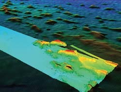 Jodi Pirtle, post-doc research associate, created accurate fishery habitat maps for NOAA biologists in Spring 2011 using seafloor mapping and "ground-truthing" video.