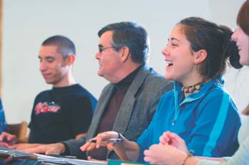 Interdisciplinary, inquiry-driven courses—Hiley's class is categorized as a philosophy offering—aren't new to the university, but the fact that freshmen are sitting in them is. Hiley is among those educators who say that we grossly underestimate freshmen. That the hierarchical stereotype of yesteryear—fumbling, confused, can't find T-Hall—is no longer applicable. They are, as a group, more serious, more determined, and, perhaps, more capable. They are a generation removed from the Boomers and all our baggage. Three generations from the days when Durham newbies were required to wear freshman beanies and "greet upperclassmen with a cheery hiyuh." A national survey of freshmen found that 70 percent disagreed when told that "an individual can do little to bring about changes in society.'" "We've learned that there is a window when students first arrive on campus when they are eager to learn and not yet cynical," says Hiley, "so we're taking advantage of that and really pushing them." HILEY'S "REMAKING NATURE" IS part of a new "Discovery" curriculum geared toward freshmen. And while there is some grumbling around campus that every class at a university should be stirring, provocative and oozing with gravitas, the point is that for the first time freshmen are being addressed with tailor-made courses meant to get them up and running. The courses at UNH and other major research universities stem from a ground-breaking national study called the Boyer Report, which found freshmen were being herded into too many lecture halls and not enough small, innovative interdisciplinary courses. At UNH there are a half dozen such offerings, to be increased gradually until there are enough for every freshman to take one. A course fetchingly titled the "Secret Lives of Words" asks students to probe the architecture, evolution and mechanics of language, delving into "the ways in which new words are coined, how they become established or die, and how they change over their natural lives." Professor Rochelle Lieber's class may be the only one in existence that routinely asks students to pucker their lips, jockey their tongue and engage their uvula to make syllabic noises. "I told you we'd be making odd noises in this class," she says. Distorted faces and barnyard sounds predominate. On another day, a different variety of howls erupts when Lieber disassembles the wonderful world of slang and its infinite originality when it concerns the human body. The Discovery, or "inquiry," classes, are a work in progress, but one unassailable plus to such courses is that freshmen don't feel like freshmen. "If college really works for you, you learn not to be embarrassed to ask dumb questions," says Judy Spiller, associate provost of academic achievement and support. "The last thing a freshman wants to do is stand out by asking a dumb question. Inquiry-driven courses make it OK to ask anything."